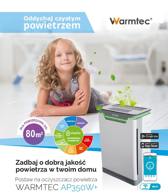 Oczyszczacz powietrza AP350W marki WARMTEC to doskonałe rozwiązanie dla alergików, astmatyków, palaczy.