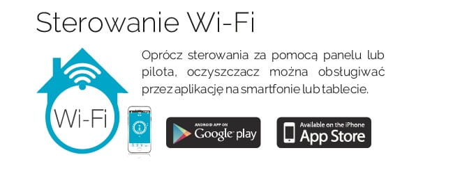pilota, oczyszczacz można obsługiwać przez aplikację na smartfonie lub tablecie.