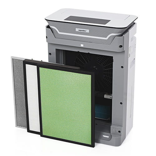 Filtr fotokatalityczny zastosowany w oczyszczaczach Warmtec składa się z gąbki na której powierzchni zastał trwale naniesiony dwutlenek tytanu (TiO2). Z powodzeniem katalizuje on zanieczyszczenia powietrza. Dwutlenek tytanu jest nietoksyczny i trwały.