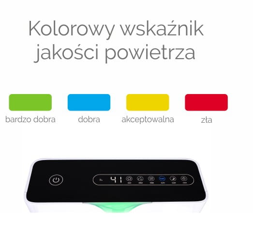 Oczyszczacz posiada wyświetlacz LCD, który pokazuje skalę zanieczyszczenia powietrza. Poziom smogu mierzony jest dla cząsteczek PM2,5 i wyświetlany na przednim panelu jednym z czterech kolorów.