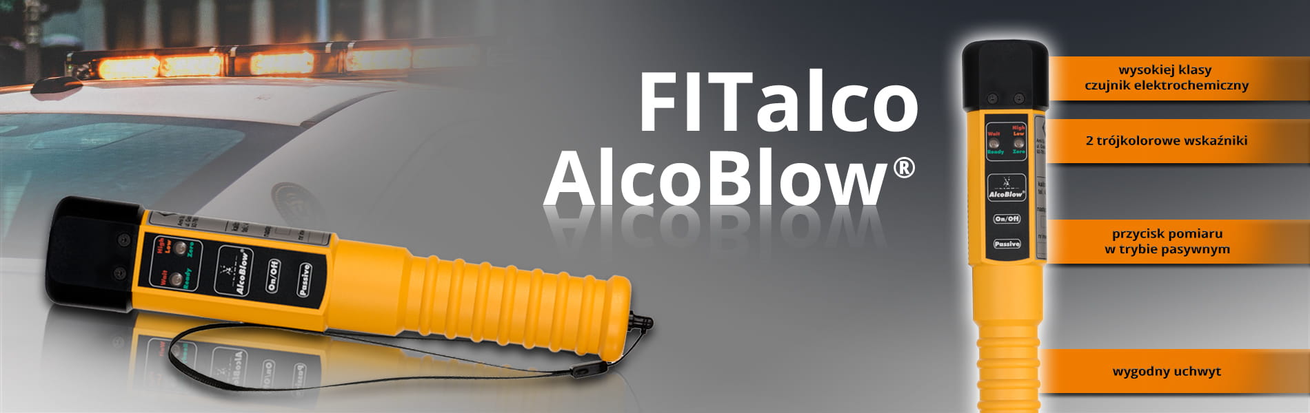 Alkomat POLICYJNY AlcoBlow pomiary bezustnikowe, wynik prezentowany kolorem diody