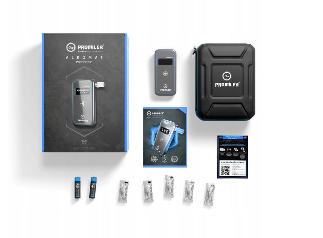 - Alkomat iSober 50 - świeżo skalibrowany i gotowy do użycia