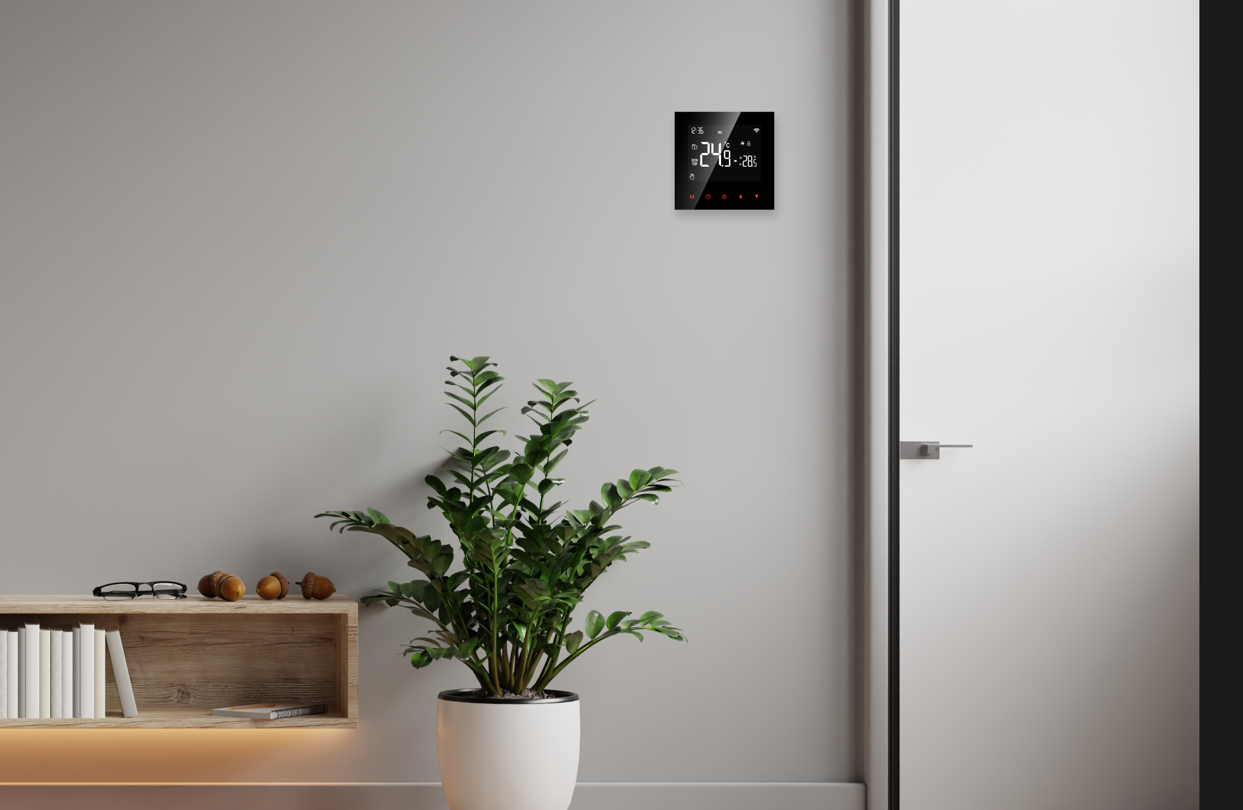 Podtynkowy regulator temperatury Warmtec SRT20W to nowoczesny, programowalny termostat wyposażony w intuicyjny, dotykowy panel sterowania z wyświetlaczem LCD.