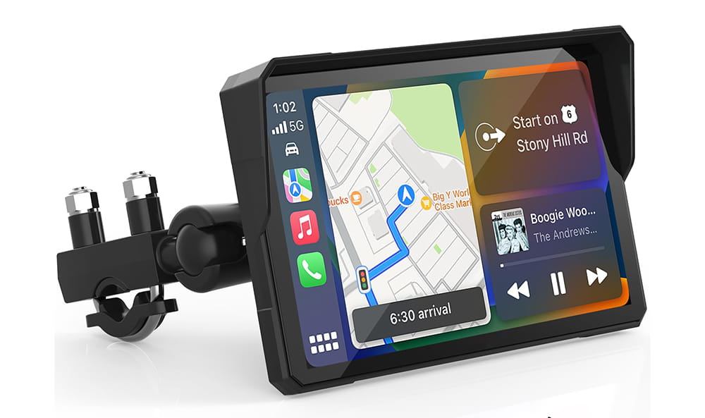 Nowoczesny ekran CarPlay/Android Auto do motocykla, 7 cali z GPS, Bluetooth i sterowaniem glosowym