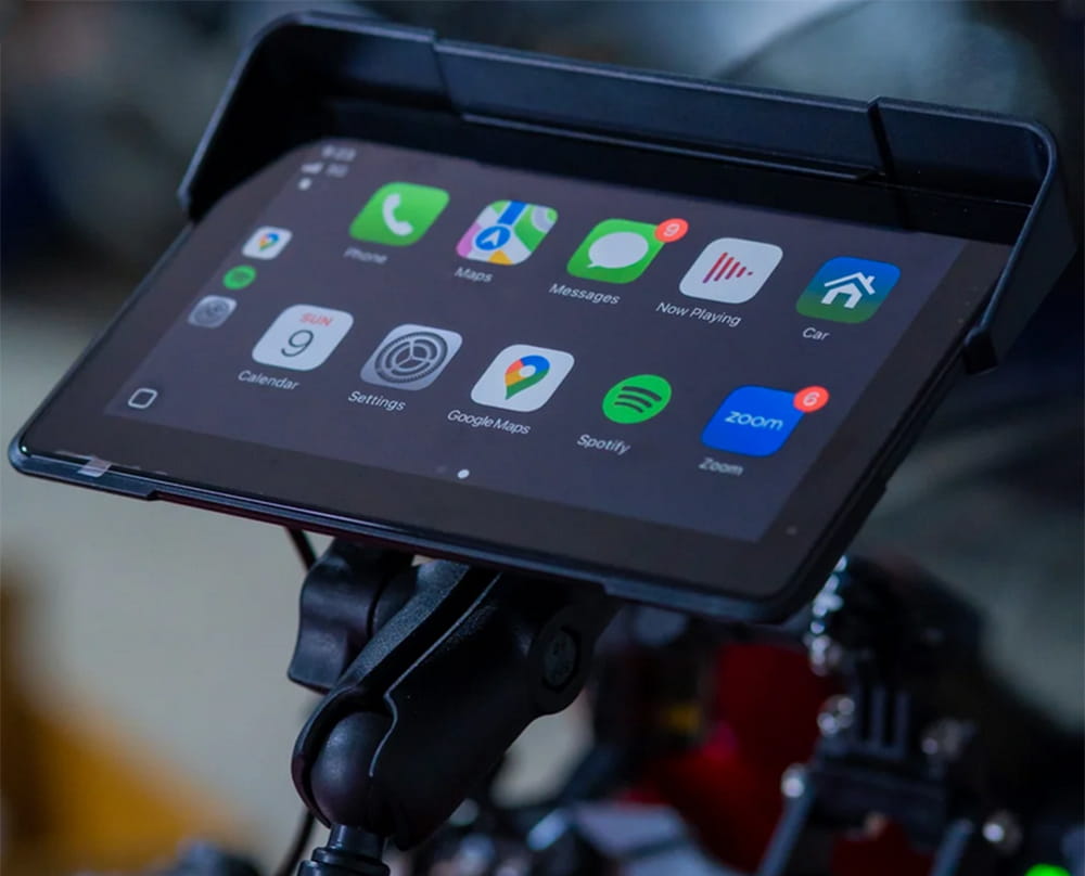 Wyświetlacz IPS o przekątnej 7 cali zapewnia dobrą widoczność nawet w pełnym słońcu. Antyodblaskowa osłona eliminuje refleksy, co pozwala bez problemu śledzić trasę i korzystać z aplikacji. Panel reaguje na dotyk nawet w rękawiczkach motocyklowych, dzięki czemu obsługa jest szybka i bezpieczna.