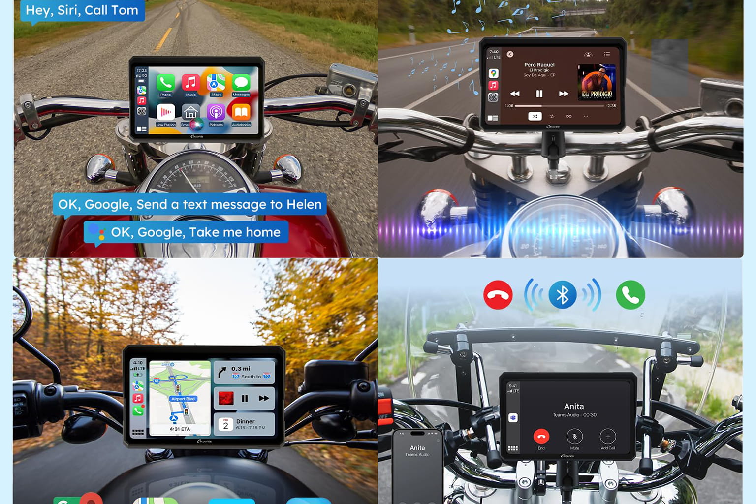 Podczas jazdy skupiasz się tylko na drodze – dzięki funkcji głosowej integracji z Siri i Asystentem Google możesz sterować nawigacją, odbierać połączenia i odtwarzać muzykę bez dotykania ekranu. Wystarczy, że masz kask z funkcją Bluetooth lub słuchawkę – resztę zrobi system. Komendy są rozpoznawane z dużą precyzją, nawet przy jeździe z wyższą prędkością.